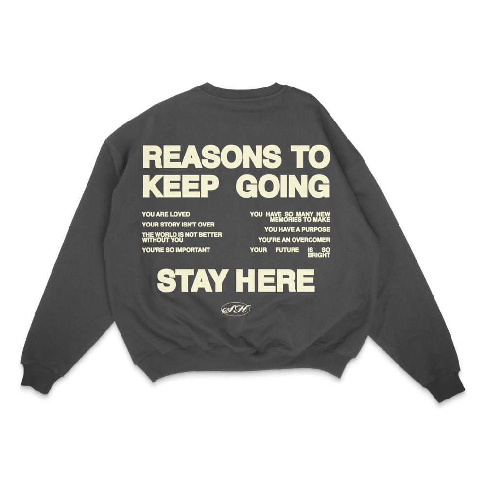 Stay Here is more than a clothing brand—we're a nonprofit dedicated to ending suicide and healing broken hearts. All apparel sales fund our life saving resources like free therapy, suicide prevention training, and a crisis helpline. When you shop with us, you support a vital cause and spark life-changing conversations.